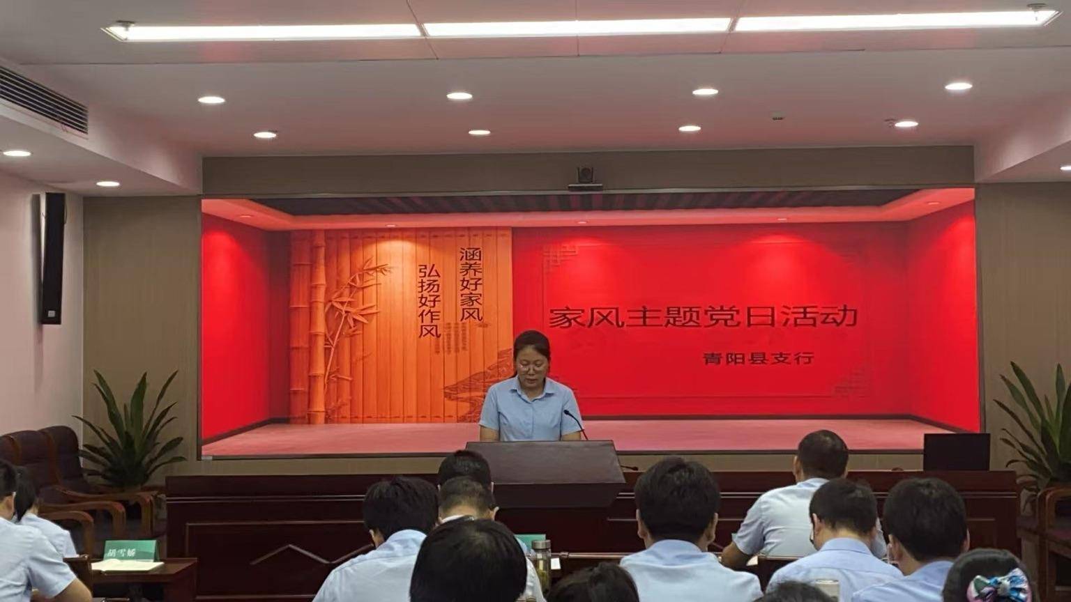 为弘扬中华民族传统美德,9月24日晚,农行青阳县支行组织开展“涵养好家风弘扬好作风”家风主题党日活动。